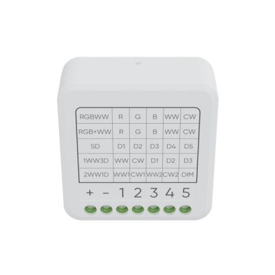 Module 5 IN 1 – BLE Mesh hỗ trợ 5 tính năng quan trọng cho ánh sáng LED dây. Tính năng đầu tiền là RGBWW; cho phép bạn tạo ra hàng triệu màu sắc khác nhau bằng cách kết hợp đỏ, xanh, xanh lá cây và ánh sáng trắng ấm và ánh sáng trắng tự nhiên.